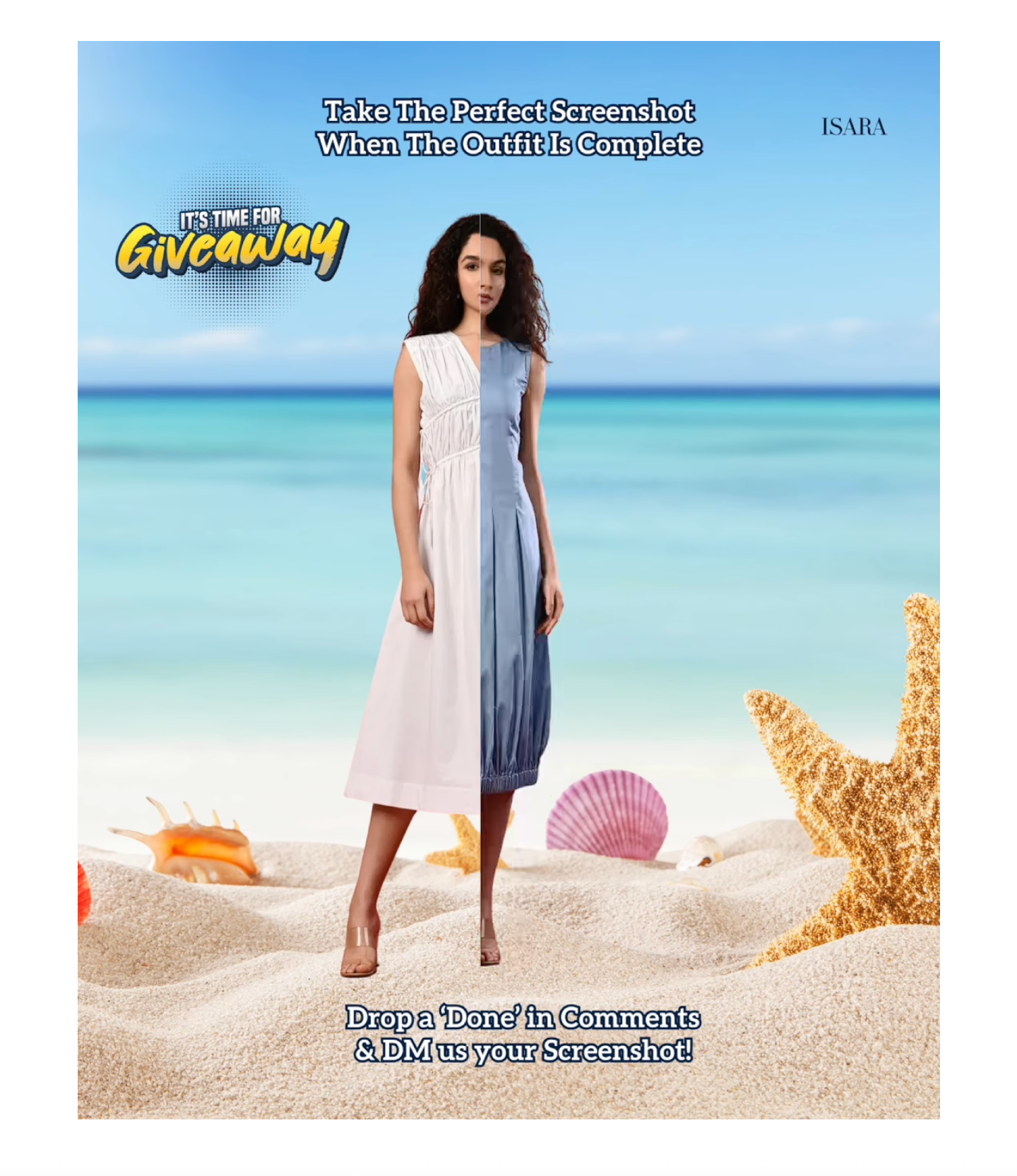 To boost interaction and community participation, we conceptualized and designed a gamified Giveaway Post centered around a creative "screenshot challenge." The post encouraged users to take a perfect screenshot of an outfit transition, drop a "Done" in comments, and DM the screenshot — increasing both engagement and direct messages. We backed the giveaway with a 7-day Instagram ad campaign to build momentum and ensure initial reach. The ad was optimized for engagement and profile visits, followed by 20 days of organic traction. The reel format was intentionally chosen to maximize interaction, shares, and time spent on the post.