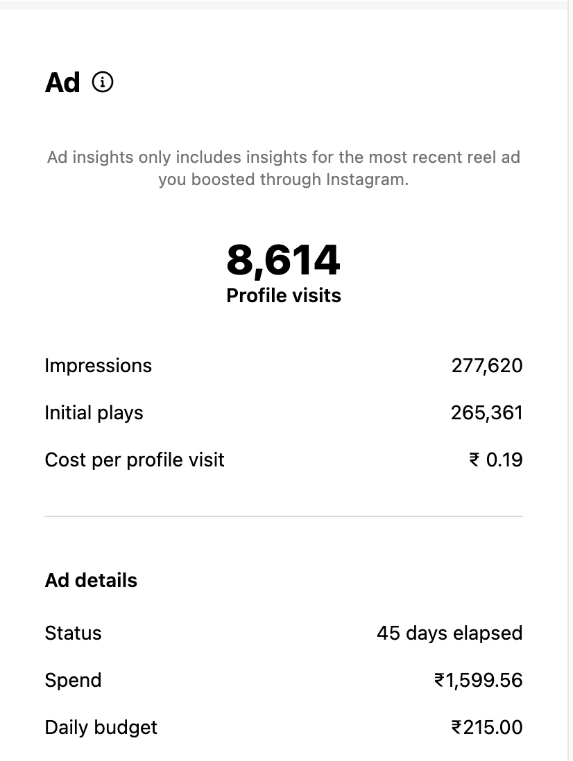 8,614 profile visits at only ₹0.19 per visit